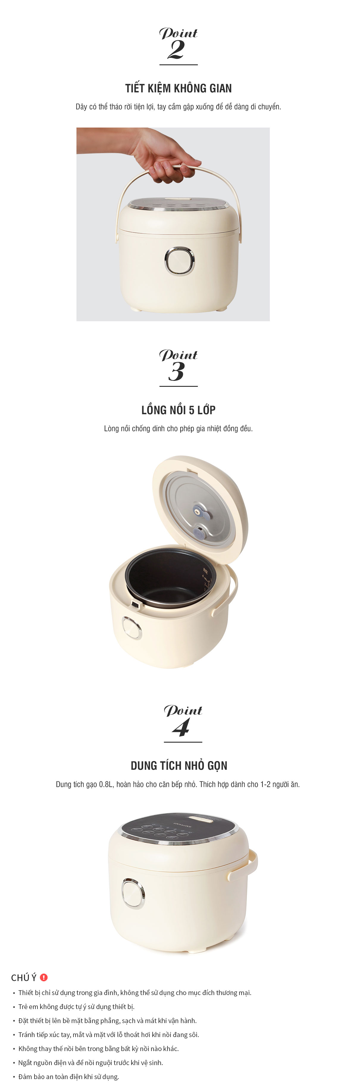EJR314IVY - Nồi cơm điện mini LocknLock Mini rice cooker 220V, 50Hz, 300W, 0.6L - Màu ngà