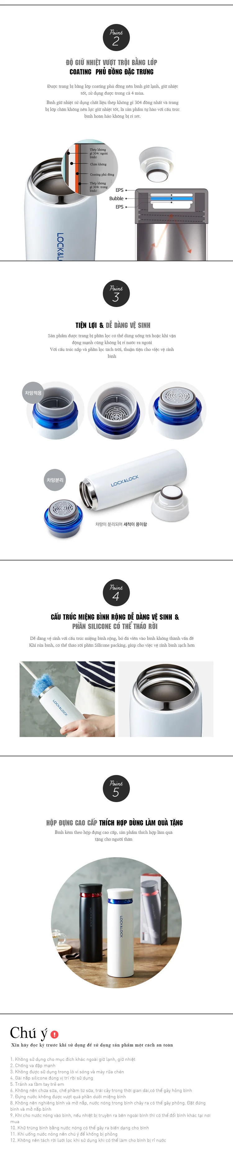 ● Tránh làm rơi hoặc va đập mạnh, vì có thể ảnh hưởng đến khả năng giữ nhiệt.