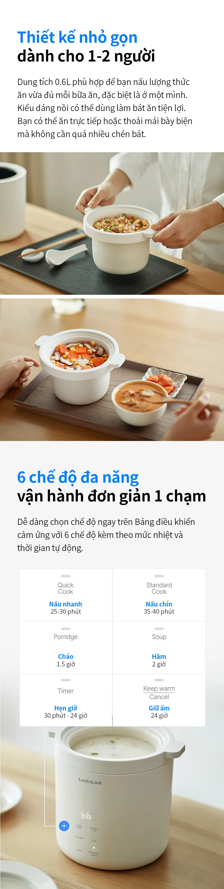 EJR314IVY - Nồi cơm điện mini LocknLock Mini rice cooker 220V, 50Hz, 300W, 0.6L - Màu ngà