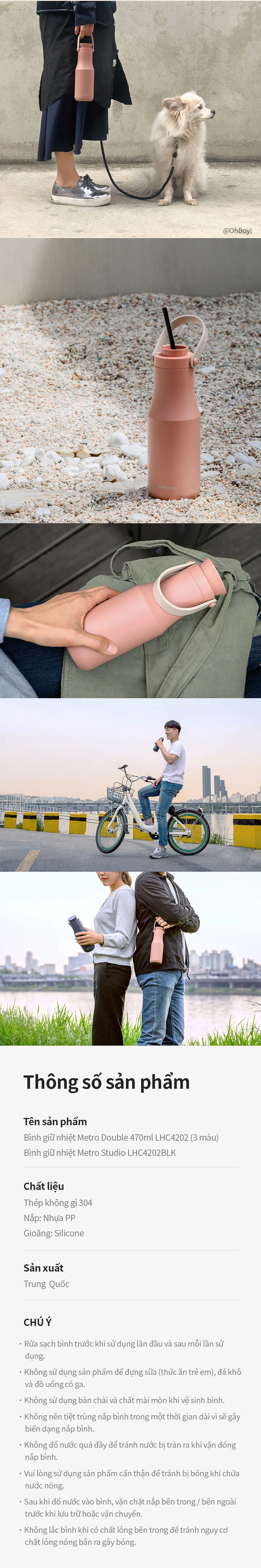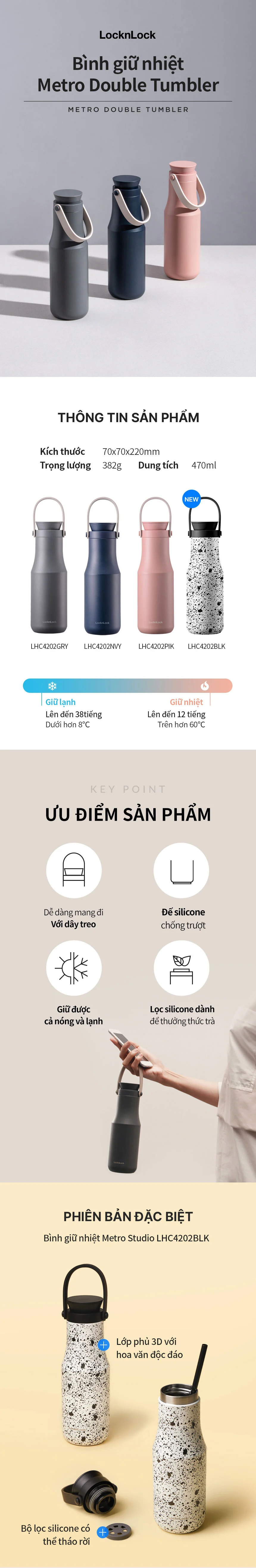 LHC4202PIK - Bình giữ nhiệt Lock&Lock Metro Double 470ml - Màu hồng